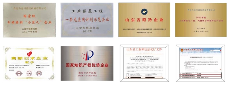 公司先后荣获“国家工业强基工程重点产品、工艺‘一条龙’应用计划示范企业”、“国家工信部工程机械高端液压件及液压系统产业化协同工作平台成员单位”、获评国家工信部重点专精特新“小巨人”、“国家知识产权优势企业”、“国家高新技术企业”、“全球工程机械产业大会零部件产品应用50强”、“中国工程机械零部件100强”、“企业信用评价AAA级信用企业”等荣誉,列入“全国机械用户满意产品名录”,获评山东省单项冠军企业、山东省“瞪羚”企业、山东省首台(套)技术装备及关键核心零部件项目、“山东省高端品牌培育企业”、“山 东省高端装备领军企业”、山东省科技“小巨人”等荣誉,被评为“山东省创新潜力100强企业”、青岛市“隐形冠军”企业,入选“青岛市高科技高成长20强”、“青岛市创新潜力10强”。